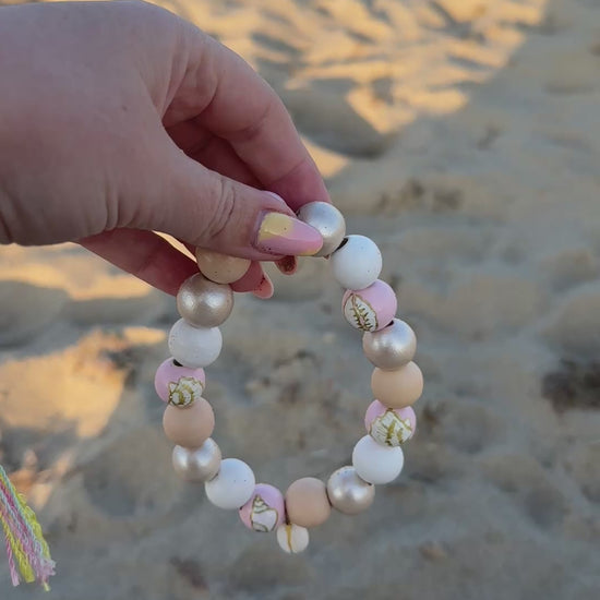 Featuring hand painted white, sandy nude, pearl and baby pink with hand painted shells & starfish
