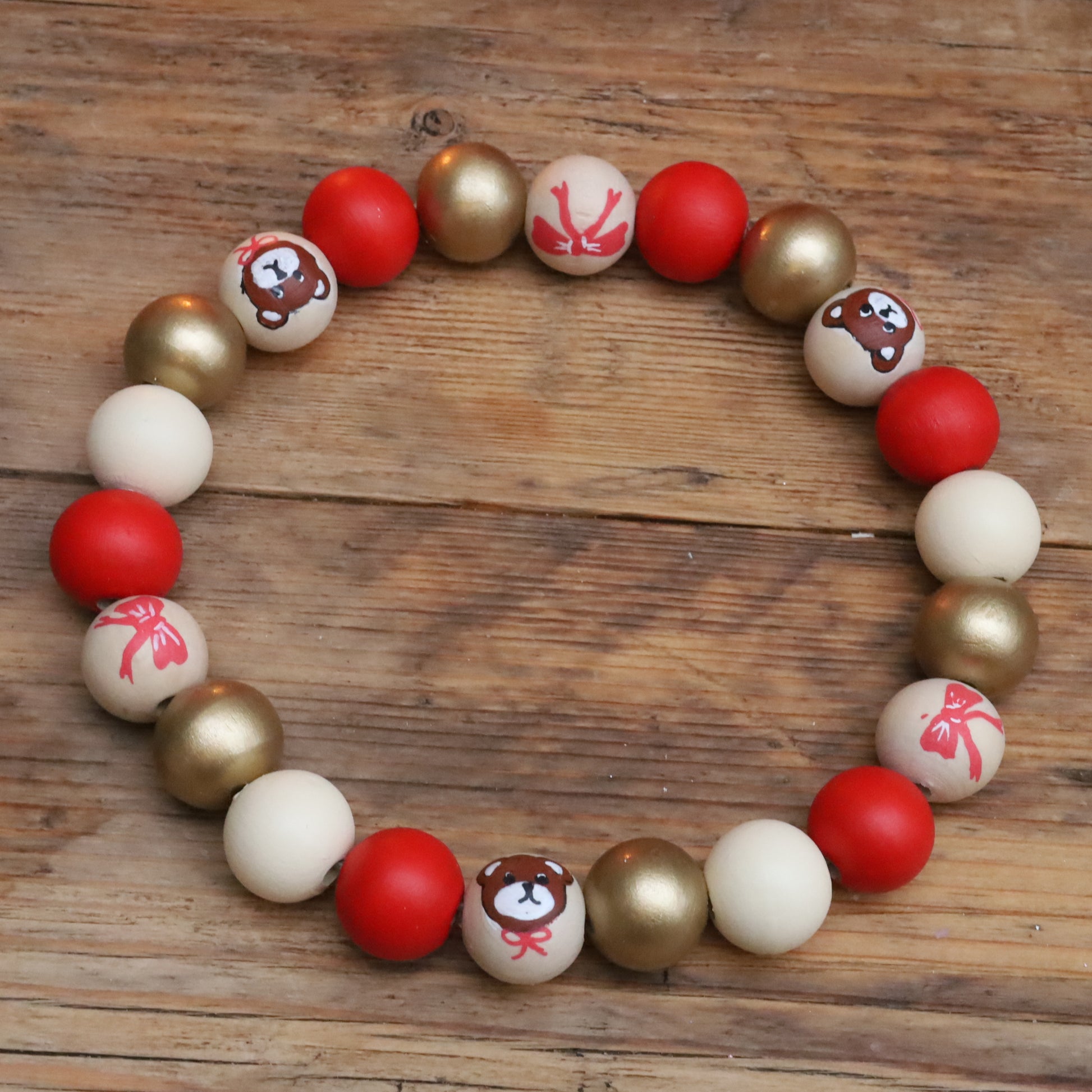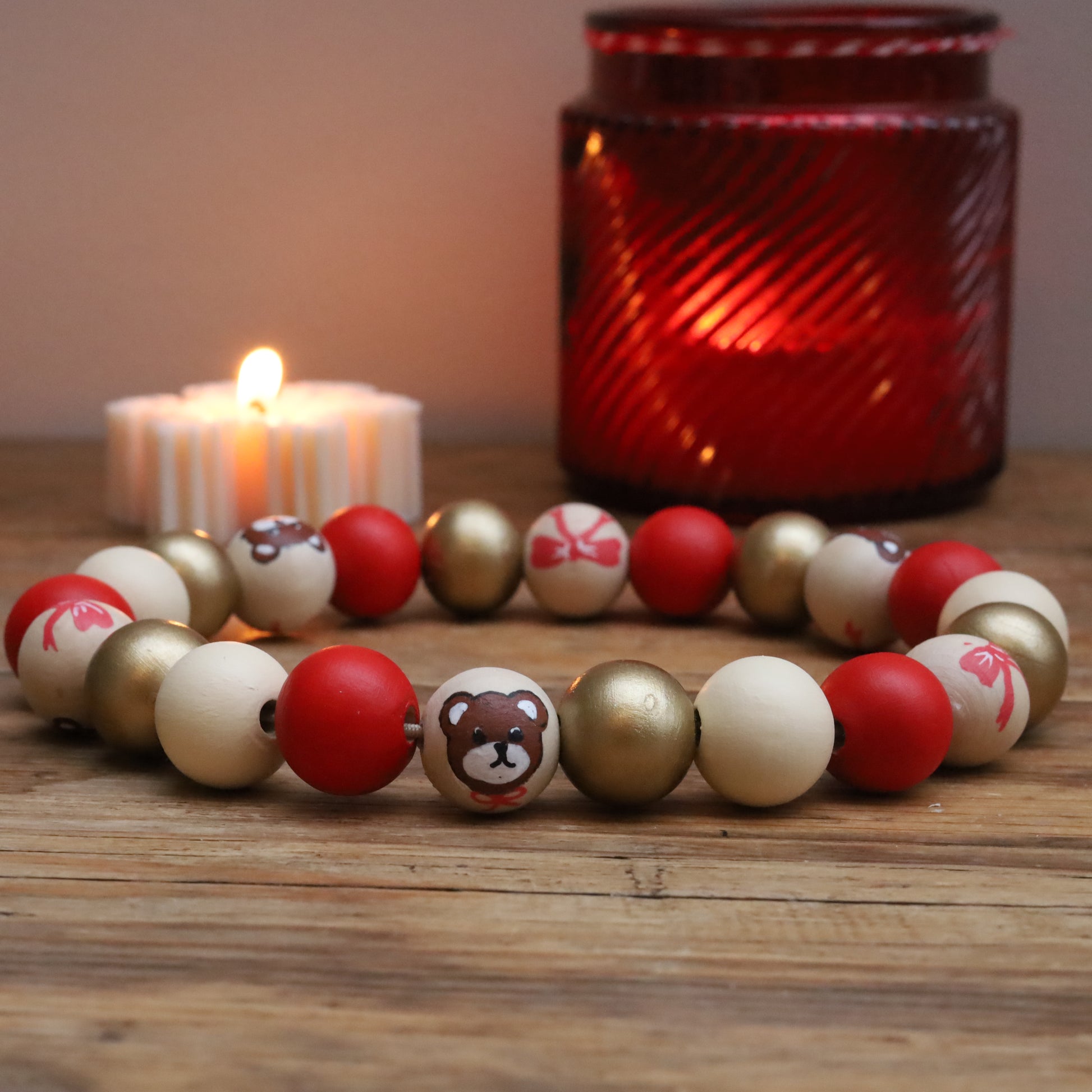 Featuring hand painted red, gold and cream beads with hand painted teddy bears and bows.