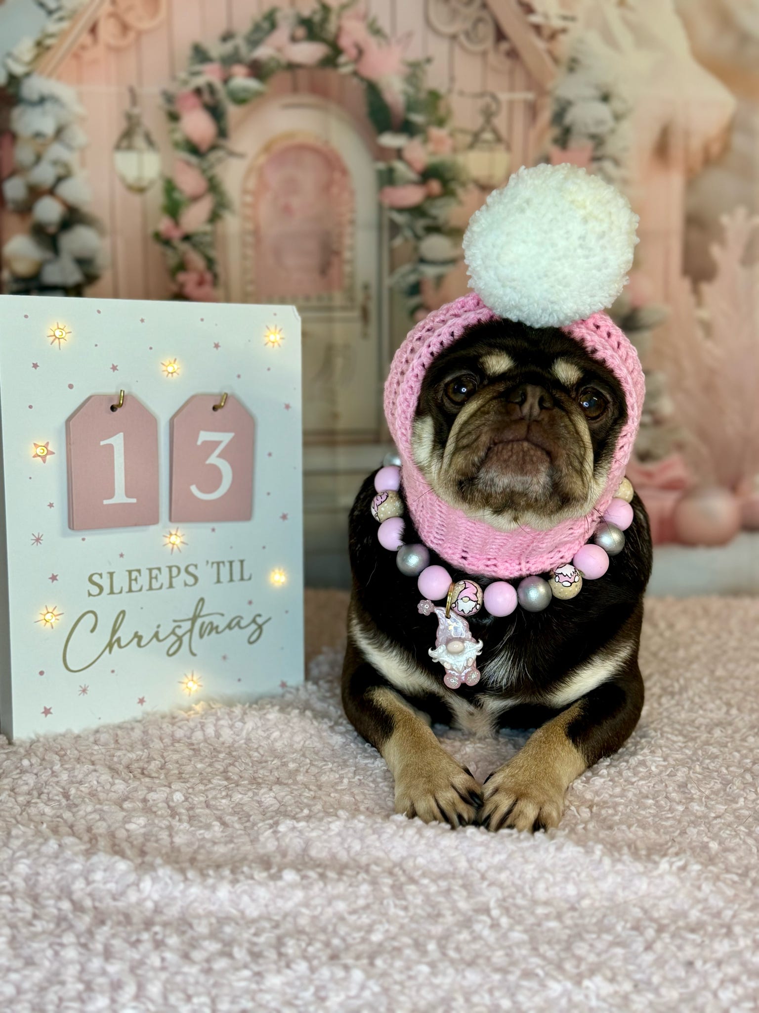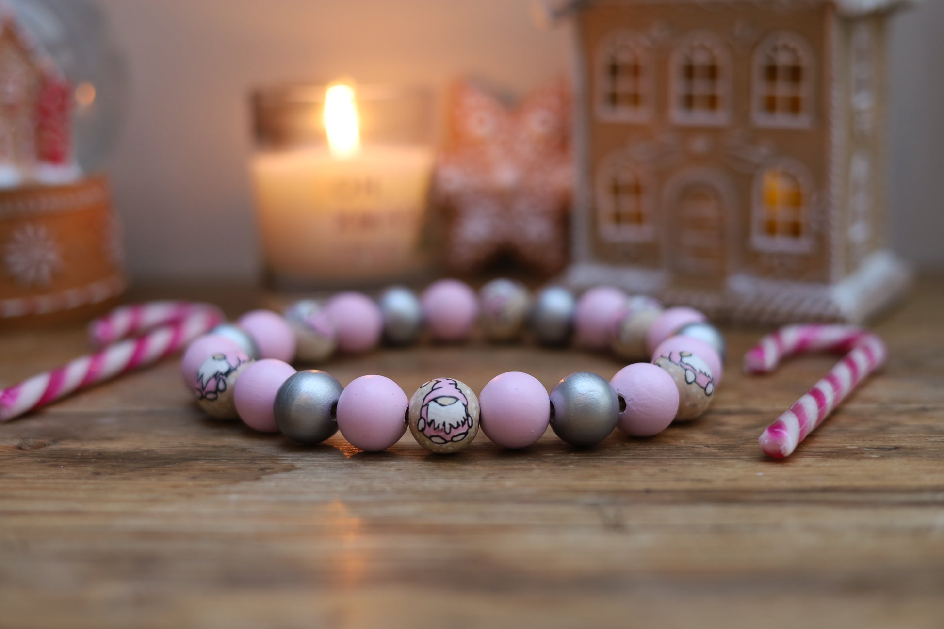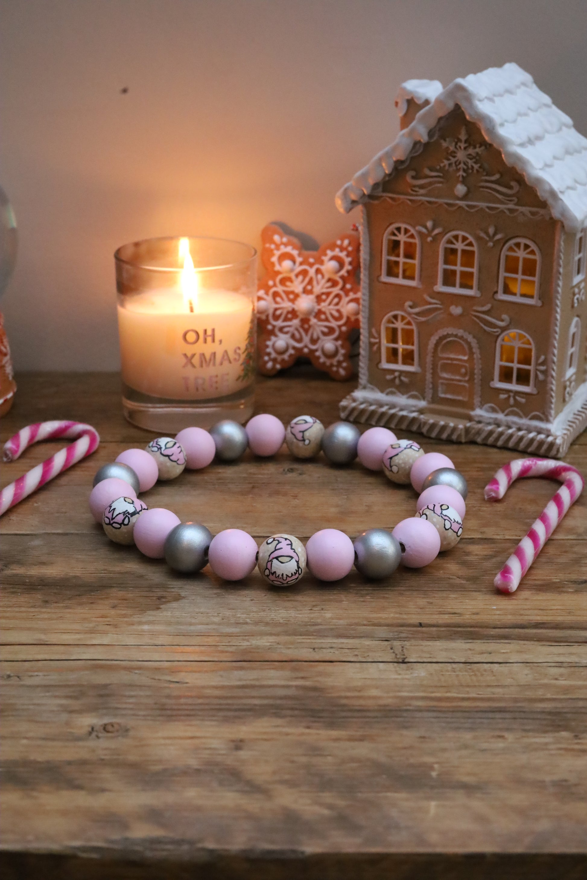 Featuring hand painted pink and silver beads with hand painted gonks