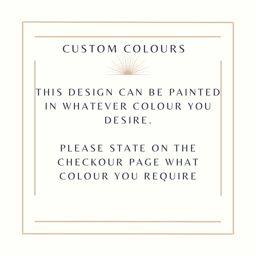 Hand painted using non toxic paints & coated using pet safe yet tough varnish meaning the designs will not budge & are water resistant.