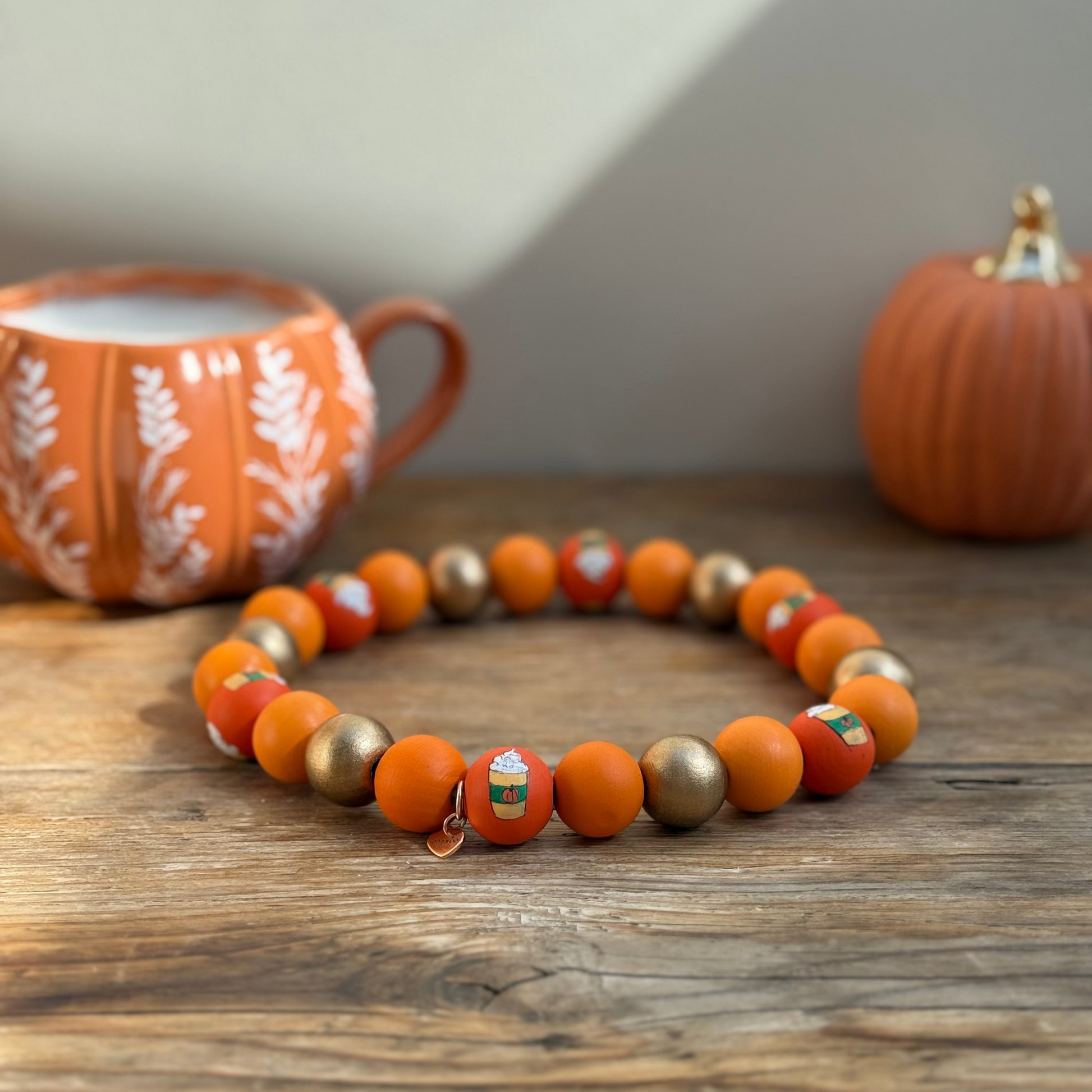Featuring hand painted orange, gold and burnt orange beads with PSL cups.