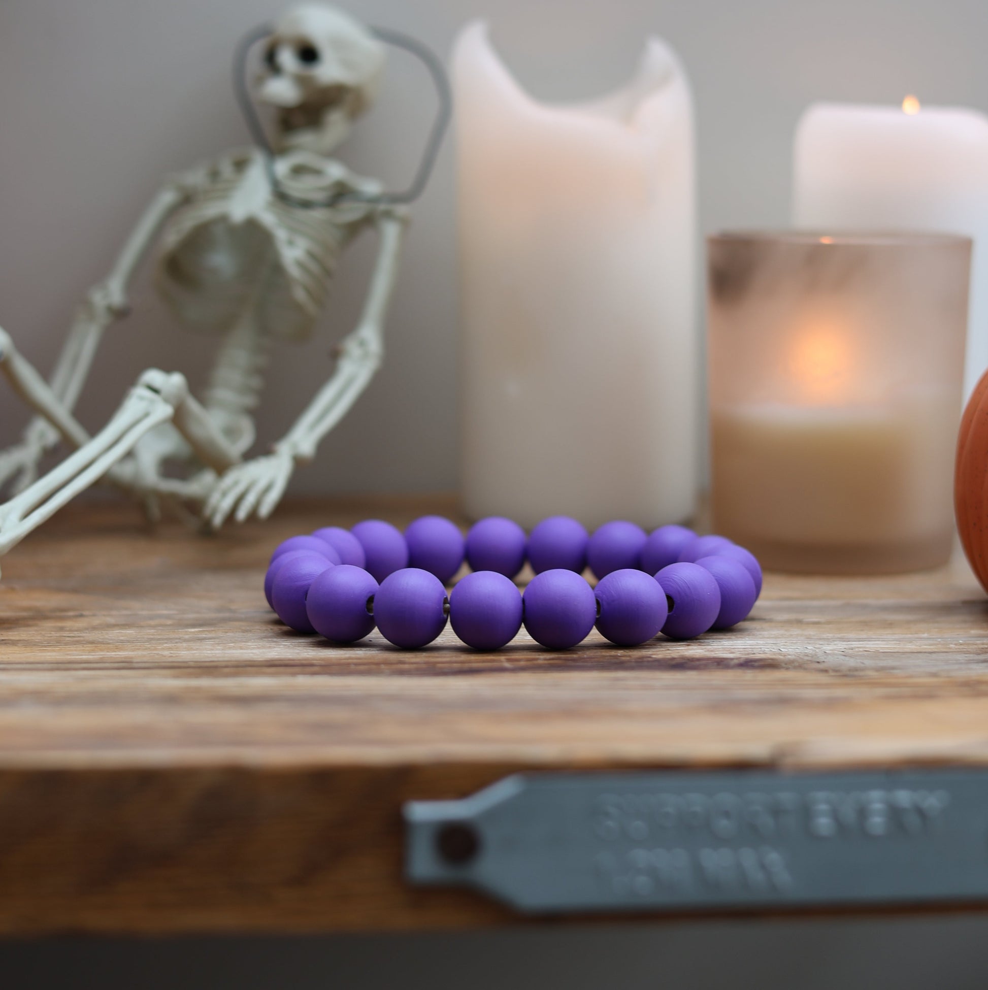 Featuring hand painted deep purple coloured beads.